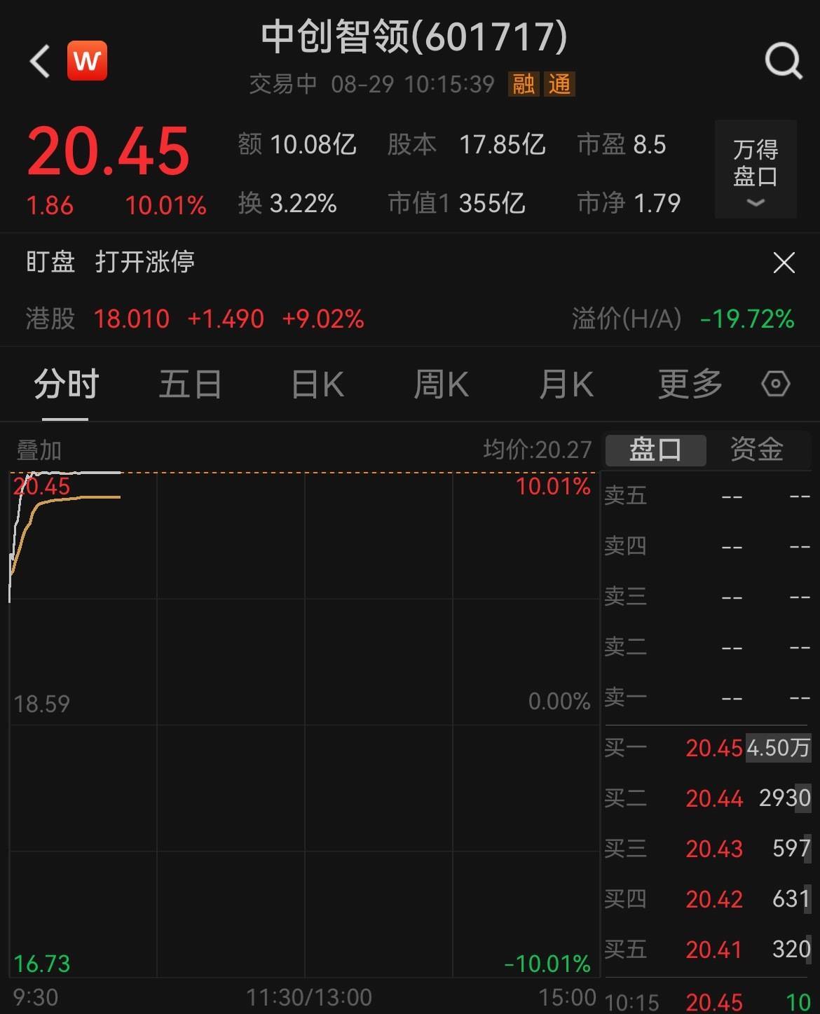 【大河财立方 记者 徐姣】8月29日开盘,中创智领股价迅速攀升至涨停。